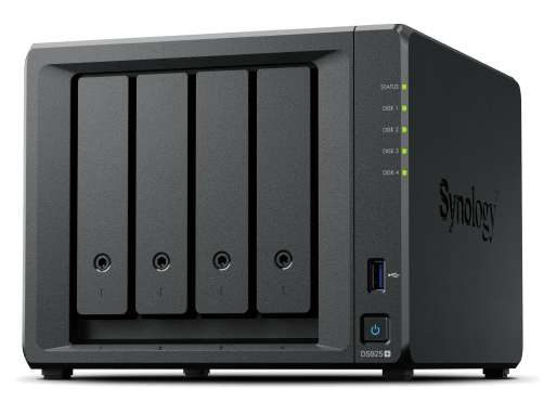 Ook de Synology DiskStation DS925+ is een verrassend krachtige en veelzijdige 4-bay NAS die vooral interessant is voor thuisgebruik en voor op kleine kantoren. Met een snelle processor, uitbreidbaar geheugen (tot 32 GB) en twee 2.5GbE-netwerkpoorten levert hij uitstekende prestaties voor alle basistaken die NAS-systemen moeten uitvoeren. Als je voor Synology kiest, is de DSM-software van het bedrijf een van de grootste voordelen. De software is gebruiksvriendelijk, maar ook erg uitgebreid voor mensen die wat geavanceerdere taken willen uitvoeren. Synology accepteert na een beleidswijziging ook gewoon weer harde schijven van externe partijen (zoals de gebruikelijke Seagate- en Western Digital-schijven). Je kan hier vier HDD’s in kwijt en twee M.2 SSD’s voor SSD-caching. Dit NAS-systeem ondersteunt tot 80 TB aan opslagruimte (zonder uitbreidingsmodule), maar helaas is er geen PCIe-slot meer voor een upgrade naar 10GbE.