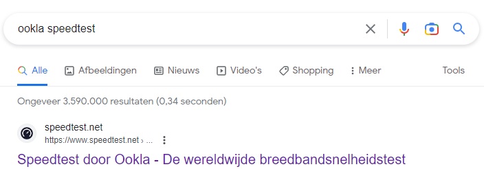 Er zijn verschillende websites waar je jouw internetsnelheid kan controleren, maar wij gaan altijd naar speedtest.net van Ookla. Om deze pagina te bezoeken, kan je op Google zoeken naar Ookla Speedtest of je gaat gewoon naar speedtest.net.