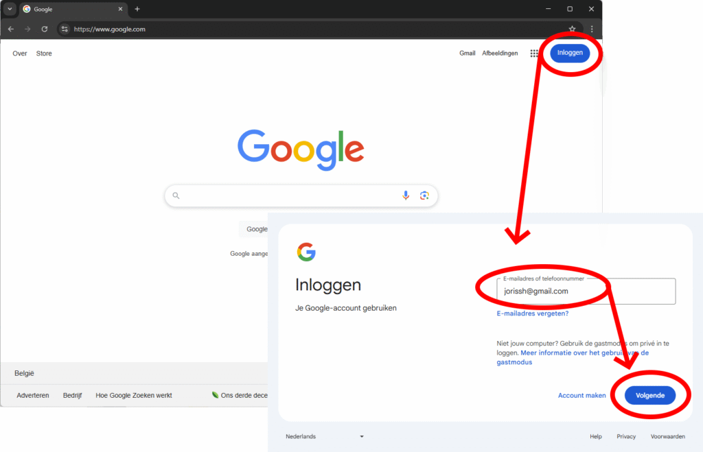 Zeker wel! Alleen als je een Gmail-account hebt en deze ook actief is op je Android-telefoon, kan je apps installeren, contacten synchroniseren, de agenda beheren enzovoort. Als je daar eenmaal aan de hand van dit boek mee gestart bent, zal je het trouwens niet meer kunnen missen. Zonder een Gmail-account lukt dit allemaal niet en mis je ontzettend veel voordelen. Voordat je verdergaat op je telefoon, keer je eerst terug naar je pc. Daar opent je de browser en surf je naar www.google.com, waar je rechts bovenaan een blauwe knop ‘Inloggen’ ziet staan. Daar klik je op en vervolgens verschijnt een venster waarin je gevraagd wordt je Gmail-adres (Google-account) op te geven, en vervolgens je wachtwoord. Als je ingelogd bent, klik je rechtsboven op het ronde icoontje met een letter en klik je op de knop ‘Google-account’ > ‘Mijn account’ > ‘Je Google account beheren’, waar je beveiliging en privacy van je account kan regelen.