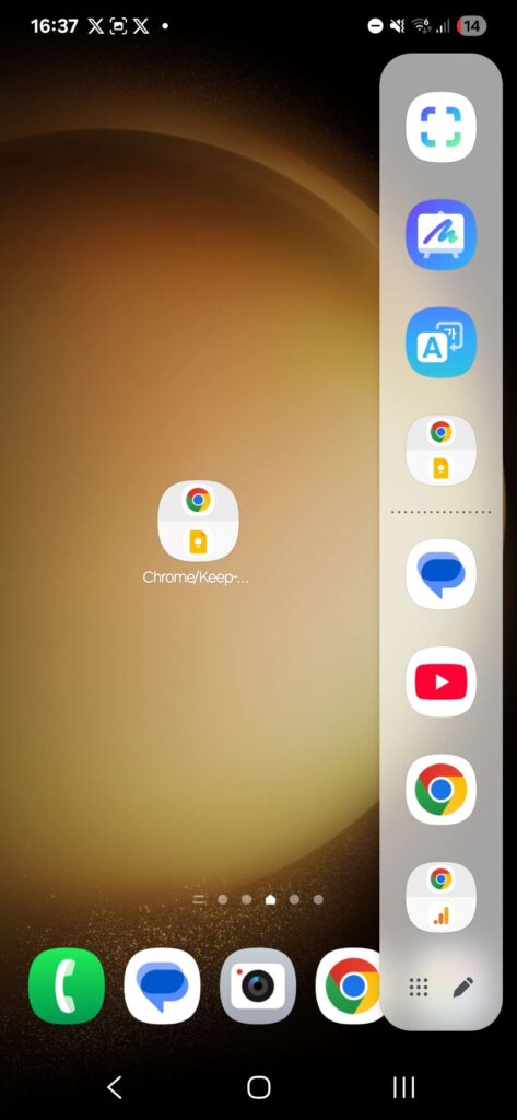 Zoals eerder gezegd zijn App Pairs al langer beschikbaar op Samsung-apparaten. Heb je twee apps in split-screen geopend, dan kan je in het midden op de scheidingslijn op de drie puntjes klikken en vervolgens op het sterretje om een App Pair te creëren. Je kan het appsduo dan toevoegen aan het Startscherm of aan je Edge-venster, zodat je het paar altijd snel kan bereiken.